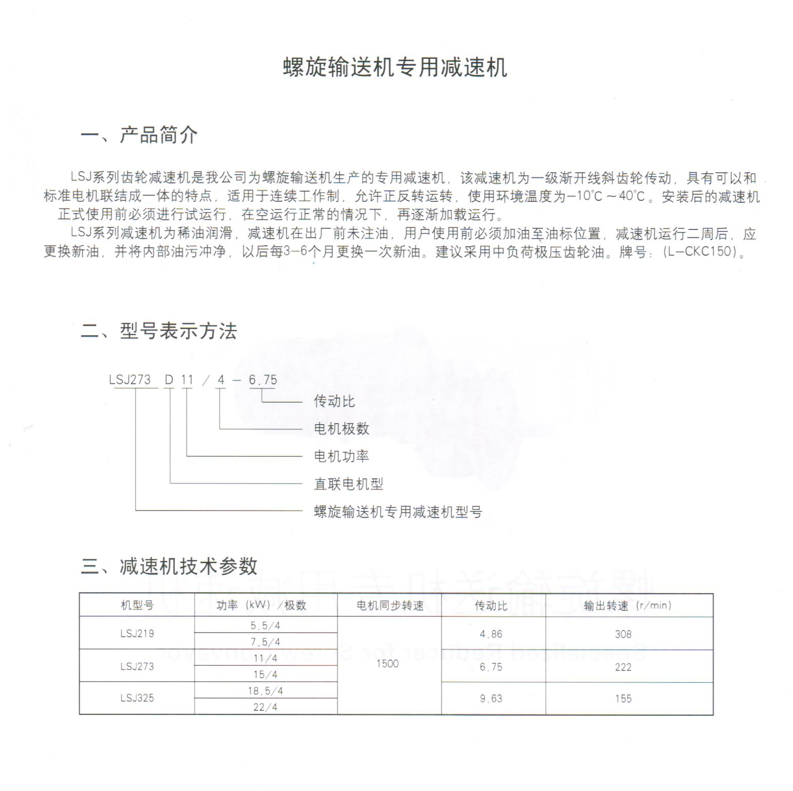 LSJ系列螺旋輸送機(jī)專用減速機(jī)